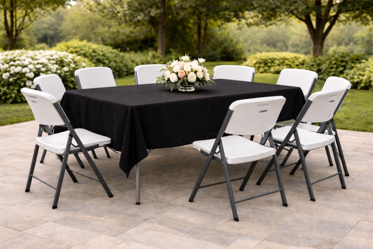 Premium Polyester table linens, perfect for our 6' Lifetime tables.